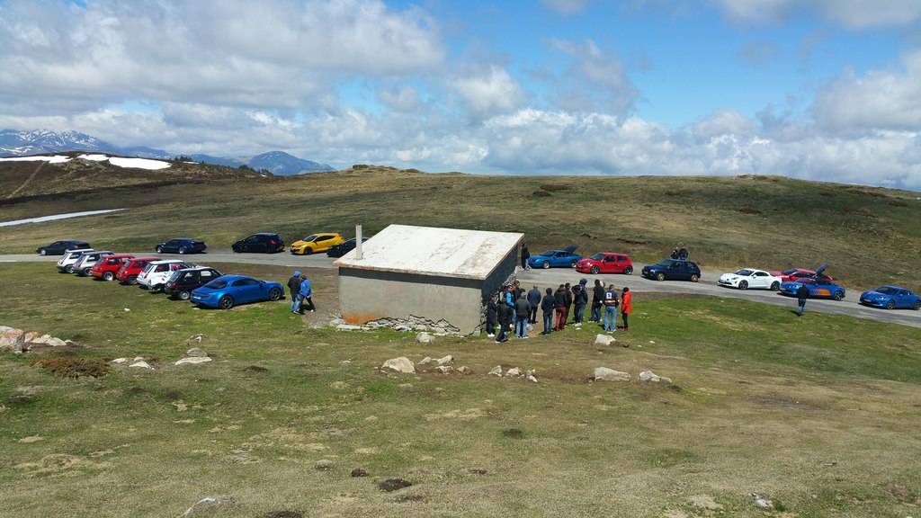 Toutes nos pensées vont à l’équipage du Buggy Buffalo mécanique R 12 Gordini des années 70 qui a dû ressentir, malgré un beau soleil le vent glacial. L’occasion de faire également un bel alignement entre autres de R 5 Turbo pour la photo. Les Alpines et Renault Sportives complètent cette belle fresque multicolore. Après ce moment vivifiant et cette magnifique vue sur la chaine des Pyrénées encore bien blanche, nous repartons en groupe vers la vallée.
