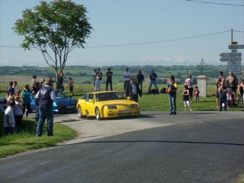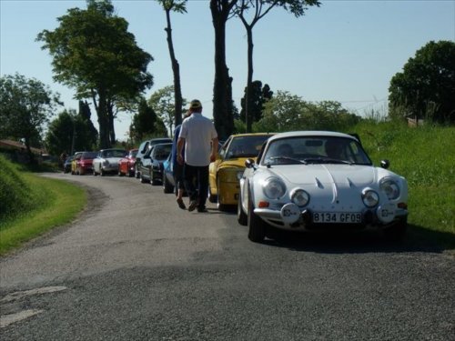 Nous voilà tous à présent sur la grille de départ. Le premier top est donné à 9h30 pour l’A 310 Pack GT de Carine et JC (Trésorière pour Madame et Web master pour Monsieur du CAGA) qui ont pour la circonstance une double mission : ouvrir la route et positionner Christelle et JD au 1er point de contrôle (à l’entrée du village « Le Verdier »).