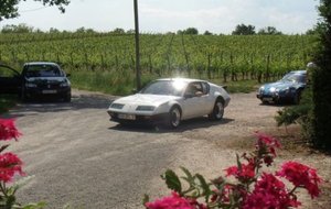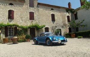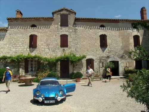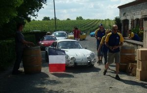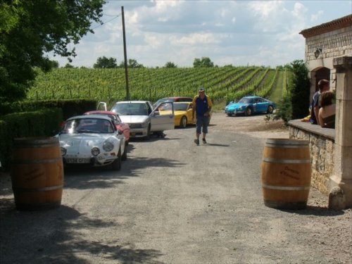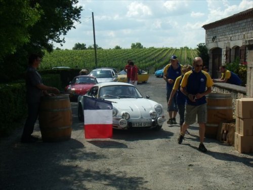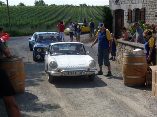 Hormis la perte de quelques vitesses sur un passage à niveau un peu relevé de la 5 Alpine turbo de José et Anne-Marie, équipage qui a pu tout de même rallier le Domaine d’Escausses situé entre Cordes et Labastide Lévis (au Centre des grands Cru de Gaillac).Le Maître de Chais Jean-Marc Ballaran et ses Amis producteurs de lentilles, cochons du Ségala, fromages et desserts locaux nous ont dressé les tables dans le magnifique parc du Domaine. Un véritable repas de terroir avec des produits sublimés par ses passionnés du goût, associé à une découverte des vins d’Escausses. Les papilles gustatives des passionnés ne seront pas en reste et chacun appréciera les saveurs d’un déjeuner constitué de produits locaux. Service à la hauteur de la qualité du repas. Coffret de vin pour chaque équipage et cœur de flûte sont distribué aux Dames sur la ligne de départ. Ligne délimitée par deux tonneaux en chêne du Domaine face au caveau.