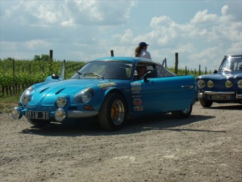 Monsieur le Maire est fin prêt. Sous un tonnerre d’applaudissement la magnifique 21 Turbo de Seb et Laurianne s’arrache de ligne de départ laissant un peu de gomme pour cette première boucle de 100Km, suivi d’une 5 Turbo 2, Alpine A 110…. Départ toute les minutes jusqu’à l’A 110 1300S Balai, et l’assistance remorque tractée par Gilbert et Jaqueline, partenaires actifs (Air Liquide)