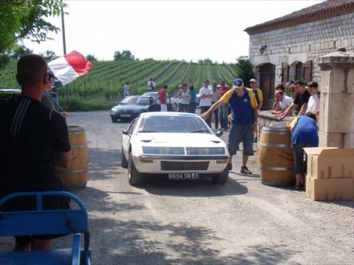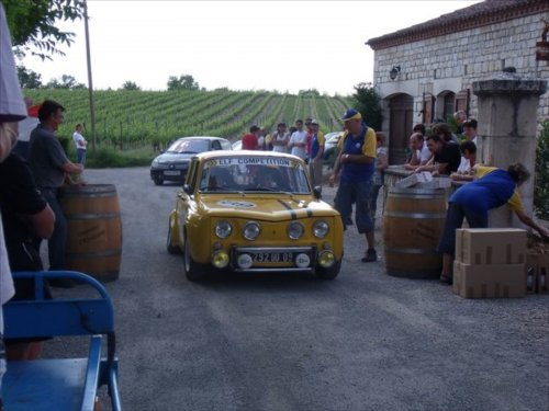 Le revêtement chauffé par les 32°C du soleil nous à permis d’admirer certaines reprises de sucettes sur les départs de quelques concurrents. Au Km 8 la Berlinette 1300 S balai ratatouille et s’immobilise brutalement sur le bas côté, le raccord d’arrivée d’essence sur un des Weber à préféré glaner une retraite plus calme au milieu des vignes de Gaillac. Nos Saint Bernard Gilbert et Jaqueline non loin de la voiture balai stoppe directement et se précipitent dans le coffre du 4x4 pour en extraire une multitude de petites boites ou réside notre raccord de secours, en quelques minutes la Belle redémarre. Les témoins rapportent que le conducteur lui à même fait une bise avant de s’enfiler dans le baquet. Au Km 21, nos Saint Bernard sont de nouveau sur des charbons ardent pour dépanner la 5 Turbo 2 d’Yvan et Delphine qui sont en panne sèche. Les petits copains ont poussé la Turbo 2 afin de la mettre en sécurité, bravo à eux pour cette entraide, ce qui a eu pour conséquence un passage hors temps au second CH du pont avant Rabastens. Un retour vers la Salle des Fêtes vers 18H30 afin de partager la célèbre « markizette » locale offerte par le Comité des Fêtes. Rafraîchissement bien mérité pour tous nos concurrents qui ont totalisés 214Km. Petit à petit les odeurs de Paella envahissent les lieux. Le temps de laisser aux pointeurs de finir le classement. Nous avons remercier tous ceux qui nous ont accompagnés, Nauroy Industries, Fontanié, Air Liquide, Cnim Transport, G.Clim Malet Produits Spéciaux, Forclim Effage, Mason, TCP, Saur, Camélia, Staubli et Renault Lavaur. Merci également à monsieur le Maire, le Comité des fêtes et Mickael de notre village.