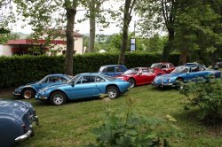 C’est donc 21 belles autos avec 2 magnifiques Dauphine qui nous attendaient sous les arbres centenaires du Parc du Restaurant de Claude Izard, haut lieu de la gastronomie culinaire.