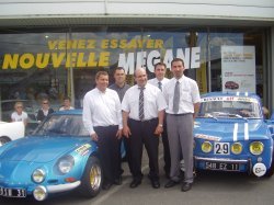 Accueil fort chaleureux de la part de nos hôtes. En entrant dans le show room le thème était donné, Twingo gordini, nouvelle clio 3 RS Gordini , Mégane RS sport allaient enfin côtoyer leurs grand-mères.