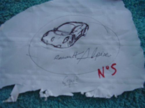 Après que Miss café soit tombée sous le charme de Brat Pitt qui était au balcon, tous les membres présents ont participé au concours "Dessines moi une Alpine". En une une ALPINE vue par Benoit ;-)
