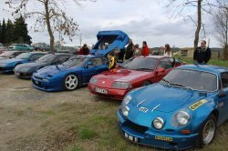 Sous les premiers rayons du soleil arrivent les participants. Très vite le village est encombré. Nous noterons notre dernière recrue du CAGA très assidu, car après une première sortie la veille à Mazamet tout le monde retrouve l’imposante Venturi 400GT de Laurent qui est prête à en découdre avec le beau tracé que nous ont concocté nos Amis.